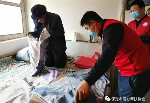 4月18日,在涞源县工商联主席王昆、南屯镇常务副镇长李志伟带领下,协会党支部书记张进国,会长齐建明,副会长齐华中,副秘书长李迈、会员邸虎子等一行来到涞源县南屯镇湖海村,对包户扶贫的8户贫困家庭进行扶贫慰问,分别给每户捐赠床上用品五件套、米面油各一份。受到帮扶的乡亲们对党的扶贫政策充满了感恩之情。