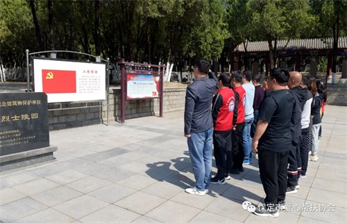 槐花飘香,和风温润。在五四青年节到来之际,保定市爱心帮扶协会组织10多位会员和党员,由协会党支部书记闫会明带队,于5月3日来到保定市爱国主义教育基地一一晋察冀烈士陵园和晋察冀军区司令部旧址,开展“追寻红色足迹,传承革命精神”主题党日活动,向五四青年节献礼。