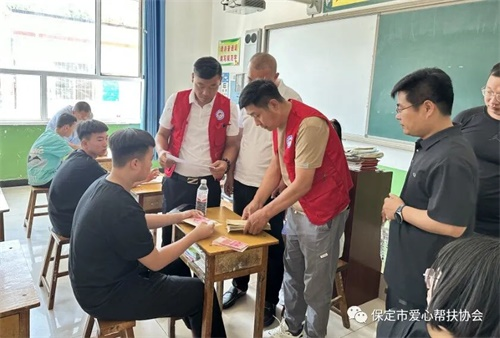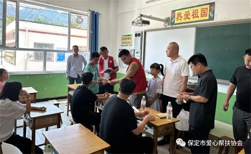 6月25日,协会代表姜辉、贾变、张志秀、闫世杰、齐国华、王秀娟、李前伟在副会长齐华中的组织下,到涞源县水堡镇进行爱心资助,对10个学生共发放了2万元的助学款。其中5千元由协会优秀会员、保定市义新绝缘材料有限公司总经理王秀娟捐助。