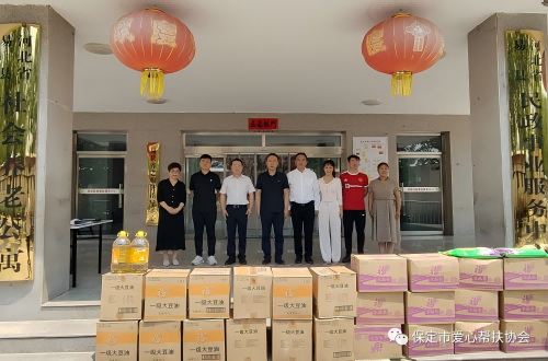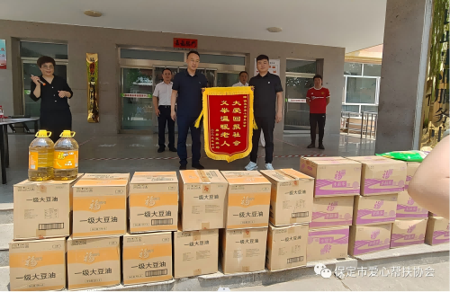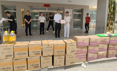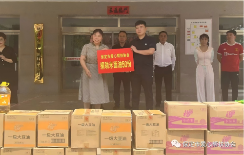 2023年7月19日上午,保定市爱心帮扶协会代表齐建明、张旭、张志秀、齐国华来到易县民政事业服务中心进行物资捐赠,捐赠的50份米面油由保定市爱心帮扶协会会长齐建明、理事张旭、保定市泰圣荷美容院总经理张志秀、保定市义新绝缘材料有限公司总经理王秀娟共同出资捐助。
