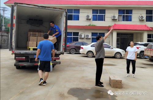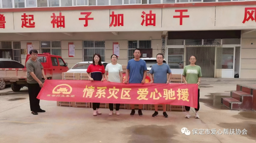 8月7日,保定市爱心帮扶协会理事单位燕都药业集团安排人员、车辆把50件共计价值12000元的次氯酸消毒液捐赠给受灾的唐县黄石口镇。