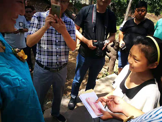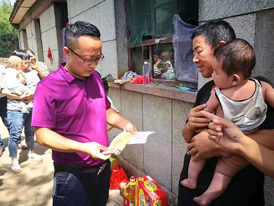 7月8日,甄志辉、史永烈带领革命老区爱心联盟的20多位代表来到唐县石门村小学三年级学生甄雨晨家进行资助。小雨晨11岁,是家里的老大,有一个妹妹两个弟弟,父母患病,奶奶失明,没有任何经济来源。穷人的孩子早当家,小雨晨用稚嫩的双肩担起了家庭的重担,并刻苦学习,成绩一直名列前三!